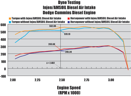 at 2,482 RPM’s with Injen/AMSOIL Diesel