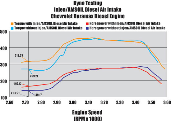 at 2,710 RPM’s with Injen/AMSOIL Diesel
