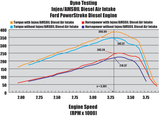 at 3,301 RPM’s with Injen/AMSOIL Diesel